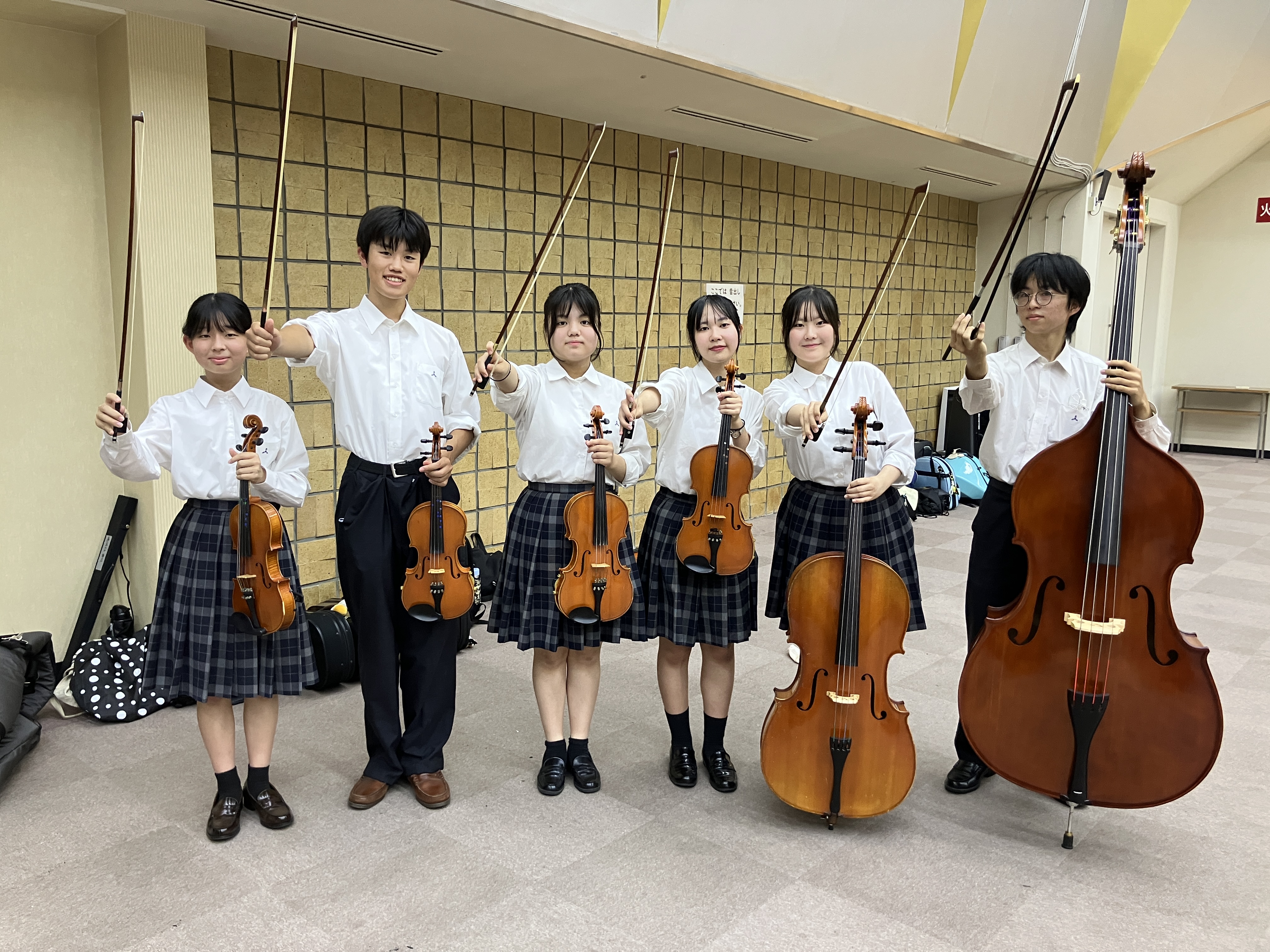 「弦楽」は、小編成のアンサンブルですが、文化祭やクリスマスコンサート、合奏コンクール出場など、熱心に演奏活動を行っています。音楽表現の幅を広げられるよう、クラシックやポップスなど、様々なジャンルの曲に挑戦しています。